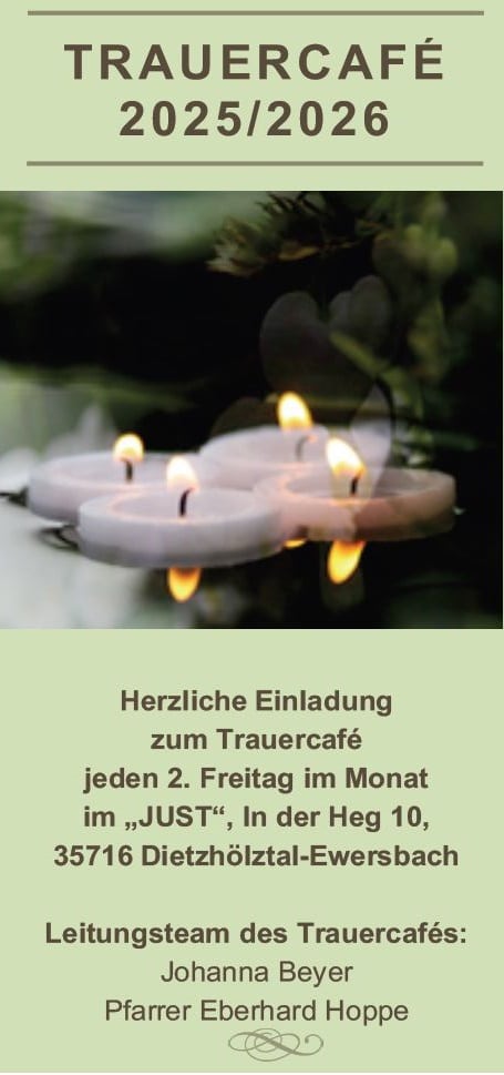 Am 14.11.2025 findet wieder unser Trauercafé im Just in Ewersbach (In der Heg 10, 35716 Dietzhölztal) ab 16:00 Uhr statt.